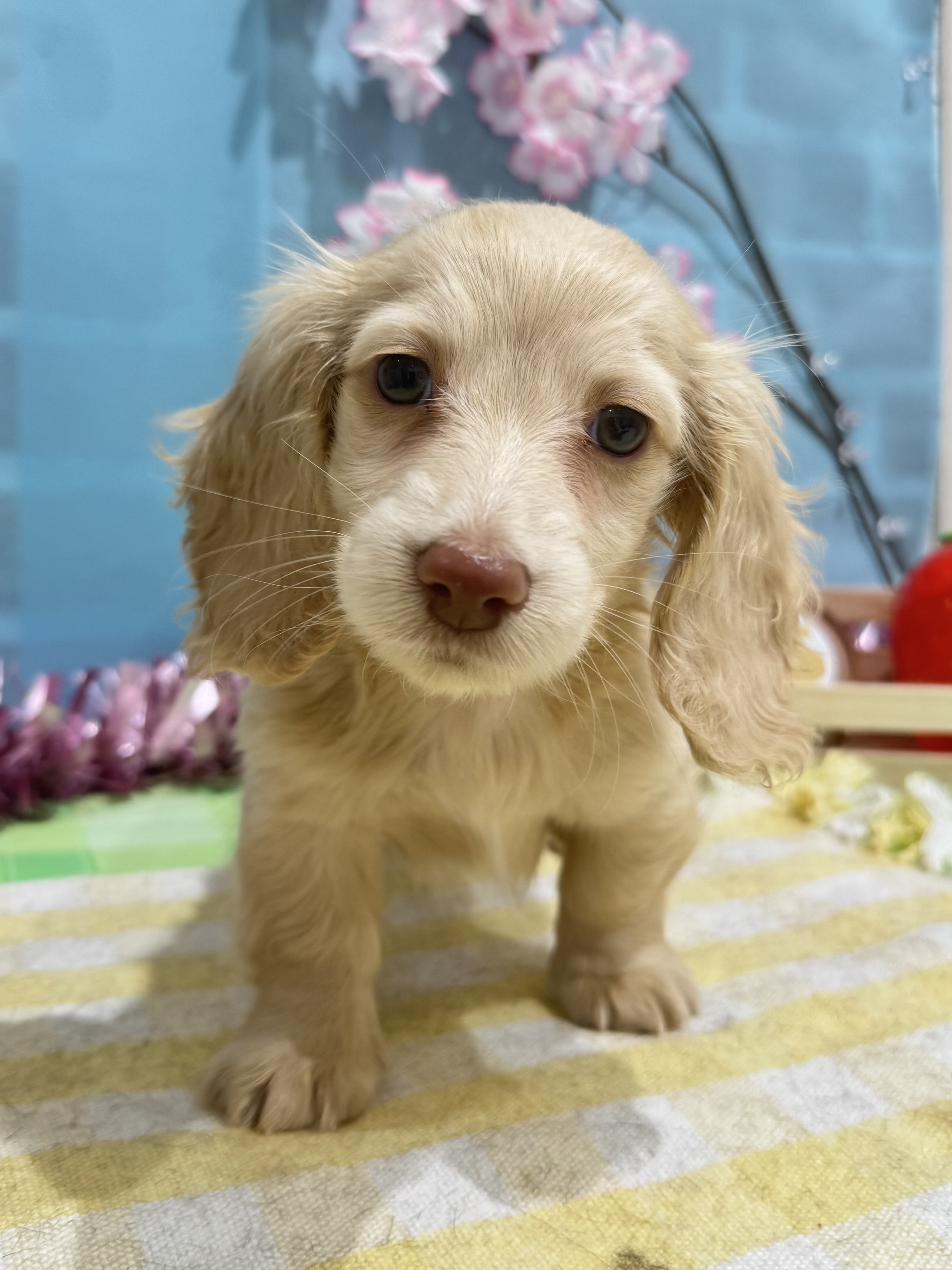 ダックスらしい社交的な性格と、ロングヘアならではの優雅さを兼ね備えたこの子。これからの成長とともに、さらに美しく華やかになっていく姿が今から楽しみです。
